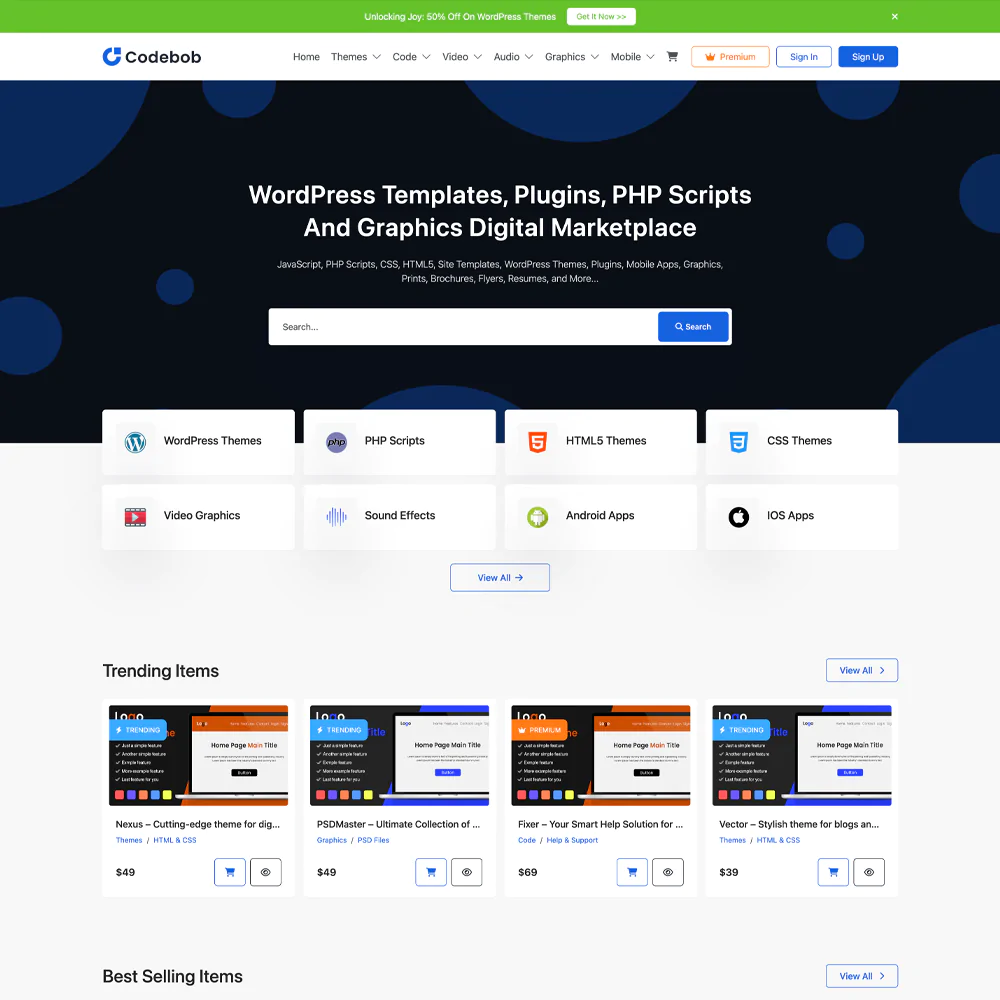 Codebob features customizable functionalities and a fully responsive design, ensuring your marketplace looks professional and operates smoothly across all devices. Built with SEO best practices, the platform enhances product visibility in search engine results, helping to attract more visitors and boost sales.